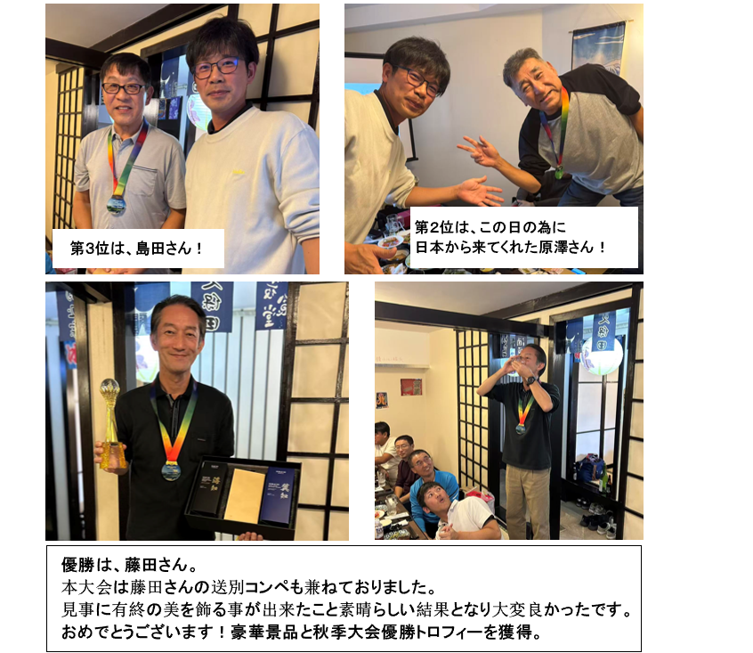 同好会情報 2025年秋季大会 (11月1日) 寧波日商倶楽部 ゴルフ同好会2025年8~10月の活動 第三回 総領事杯(6月21日) 第三回4地域対抗戦(2025年6月14日) ゴルフ同好会2025年5~7月の活動