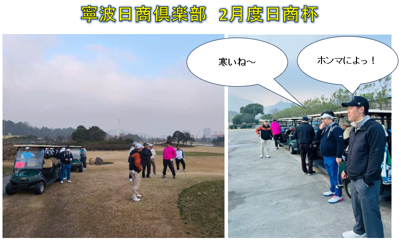 現在位置:トップページ > > ニュース もっと知る 会員に申込 寧波日商倶楽部 ゴルフ同好会 アクセス:5回 更新時間: 2026/04/12 2026-2027シーズン開始! ゴルフ同好会2026年1-2月の活動 -活動内容- 1月17日 1月度 寧波杯(東方ゴルフ場) 参加:13名 1月31日 2月度 日商杯(東方ゴルフ場) 参加:13名 最新ニュース ゴルフ同好会2026年3月の活動 寧波日商倶楽部 ゴルフ同好会 ゴルフ同好会2025年12月の活動 寧波日本語補習授業校2025年度卒業式 2026年3月7日 定期懇親会 人気ページ 会員コーナー 倶楽部概要 生活情報 同好会 会長ご挨拶 同好会情報 ゴルフ同好会2026年3月の活動 寧波日商倶楽部 ゴルフ同好会 ゴルフ同好会2025年12月の活動 寧波日本語補習授業校2025年度卒業式 🥎Ningboys✖阿拉🥎2026.3.15